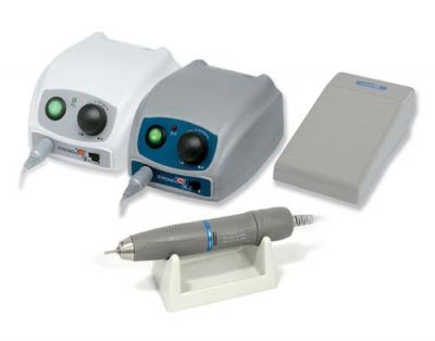 Mikrosilnik szczotkowy w wersji stołowo-nożnej z systemem płynnej regulacji, wytwarzany w dwóch wersjach kolorystycznych zasilacza - jasno beżowej i szarej, posiada ręczną i nożną kontrolę prędkości obrotowej, automatyczne zabezpieczenie przeciążeniowe, przełącznik obrotów lewo-prawo, system kontroli sprzężenia. Charakteryzuje się kompaktowym i ergonomicznym kształtem - model A ma nożną regulację obrotów, a model B tylko włącznik na obudowie.